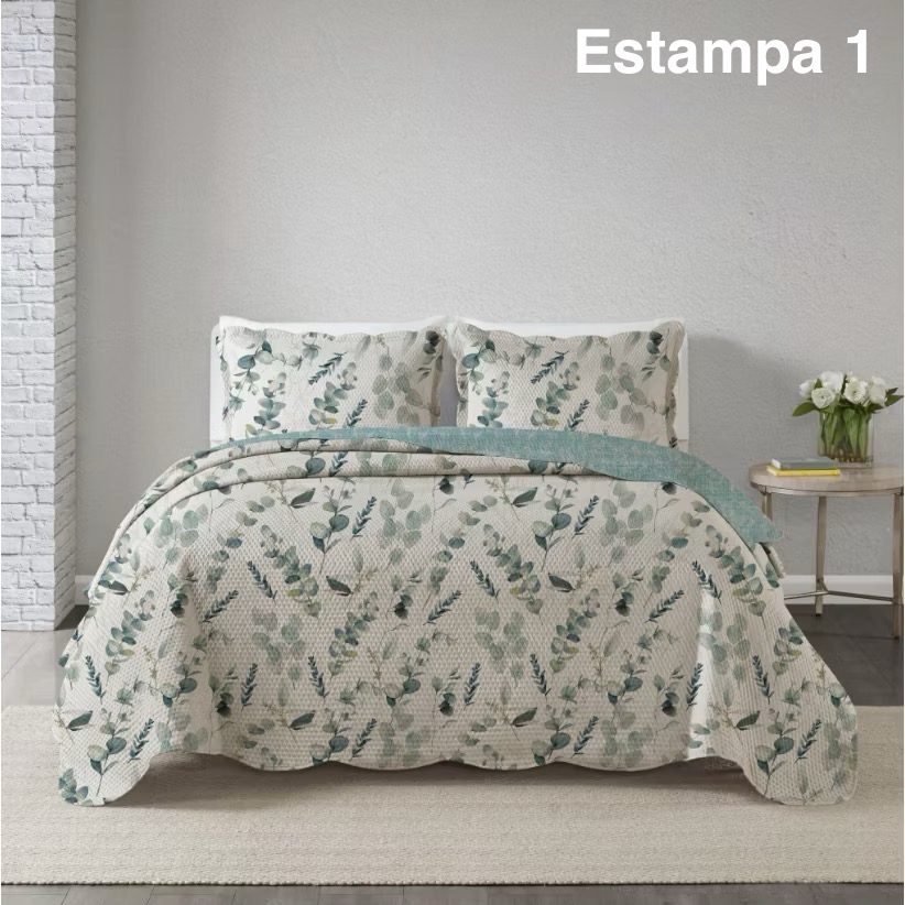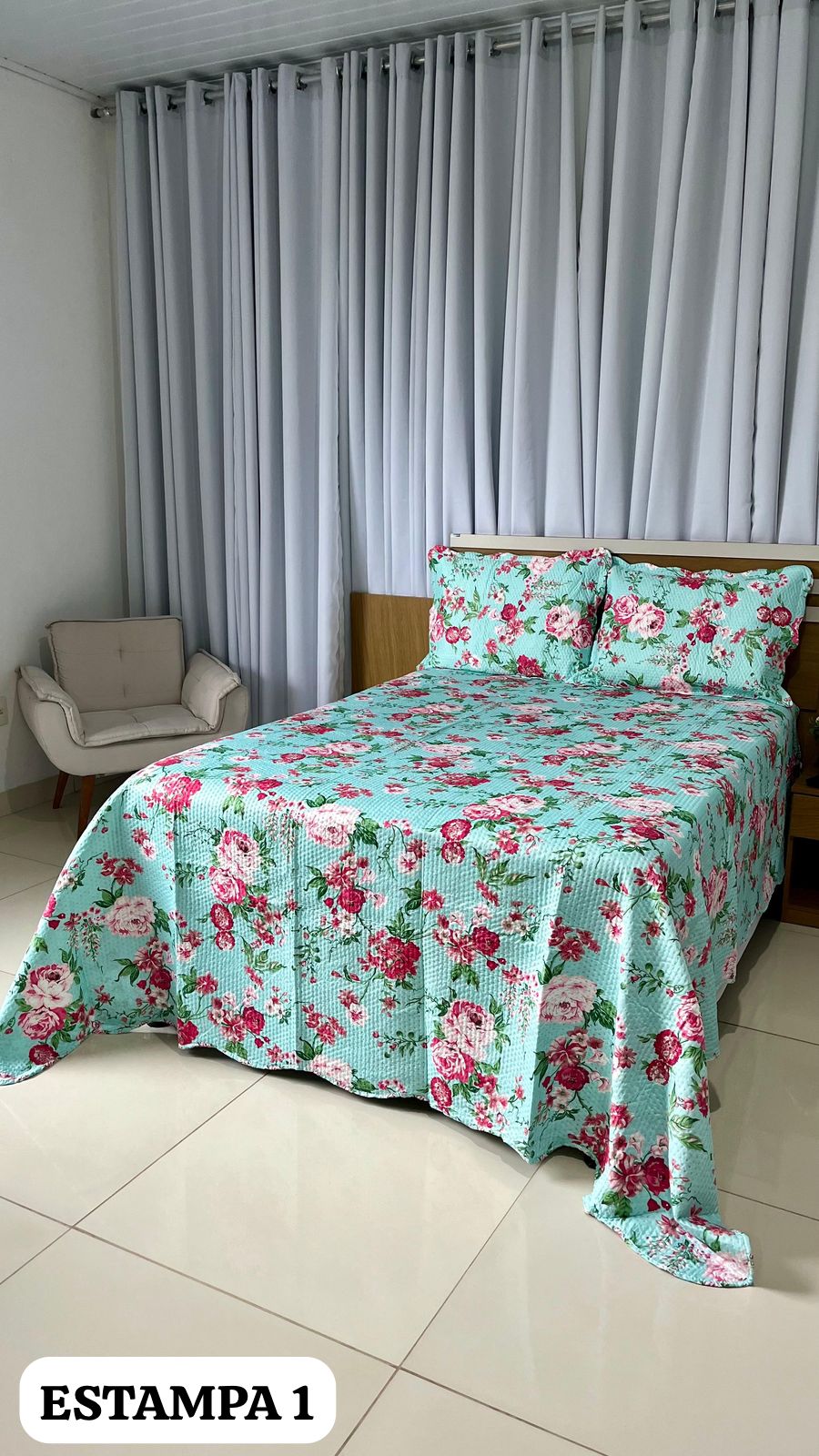 CONTÉM: 1 COLCHA QUEEN 2,40m X 2,60m + 2 PORTA TRAVESSEIROS 50cm X 70cm